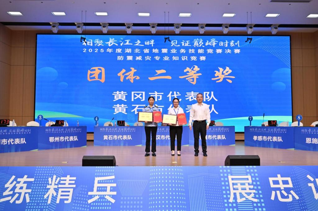 黄石市应急管理局选派的3名代表队队员在竞赛中沉着应战,凭借扎实业务功底和默契配合,充分展现黄石防震减灾队伍的专业素养,最终斩获防震减灾专业知识竞赛团体二等奖。